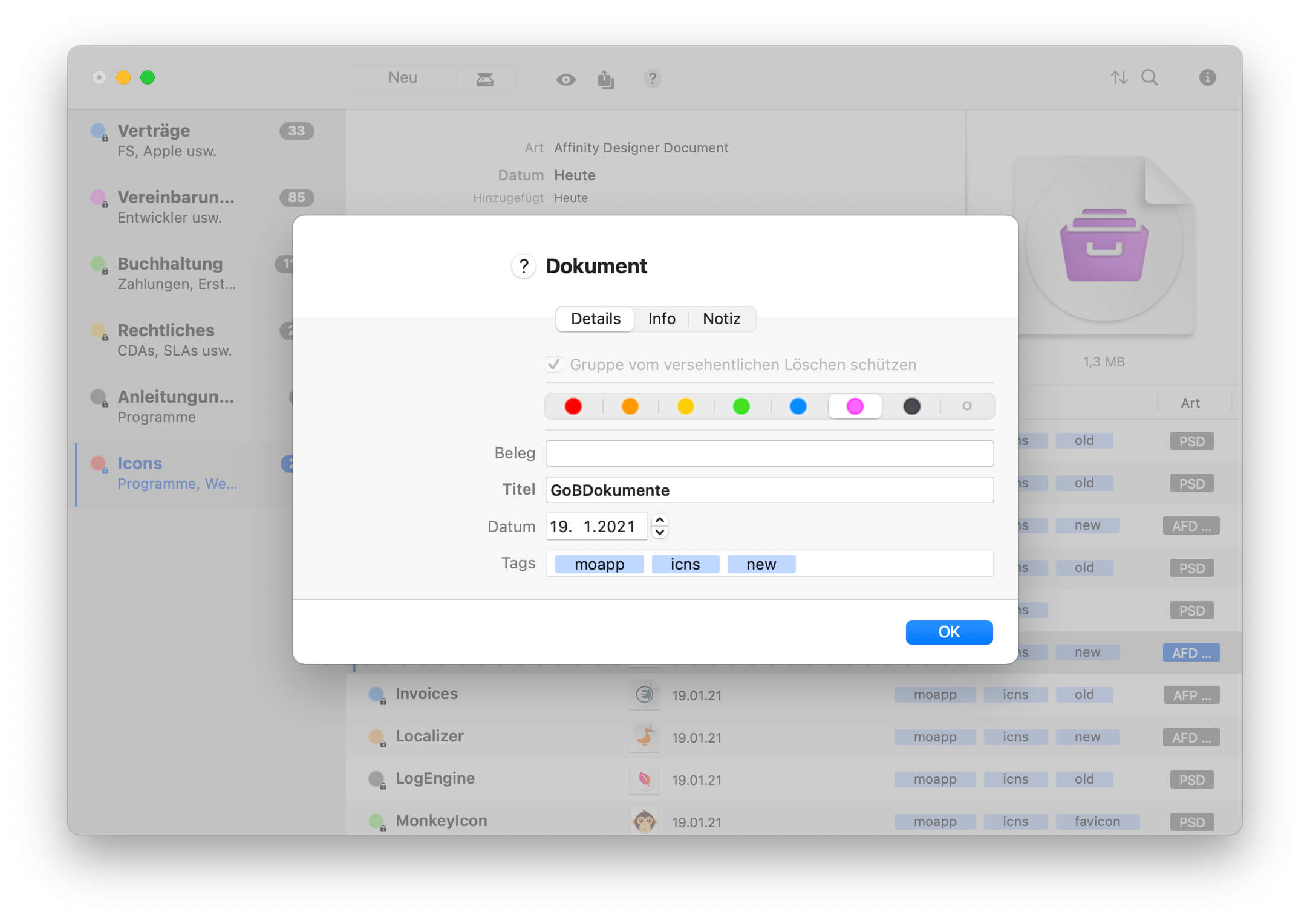Documents stored in the program cannot be modified or manipulated. Thus, GoBDocuments can be used for accounting, business and legal documents.