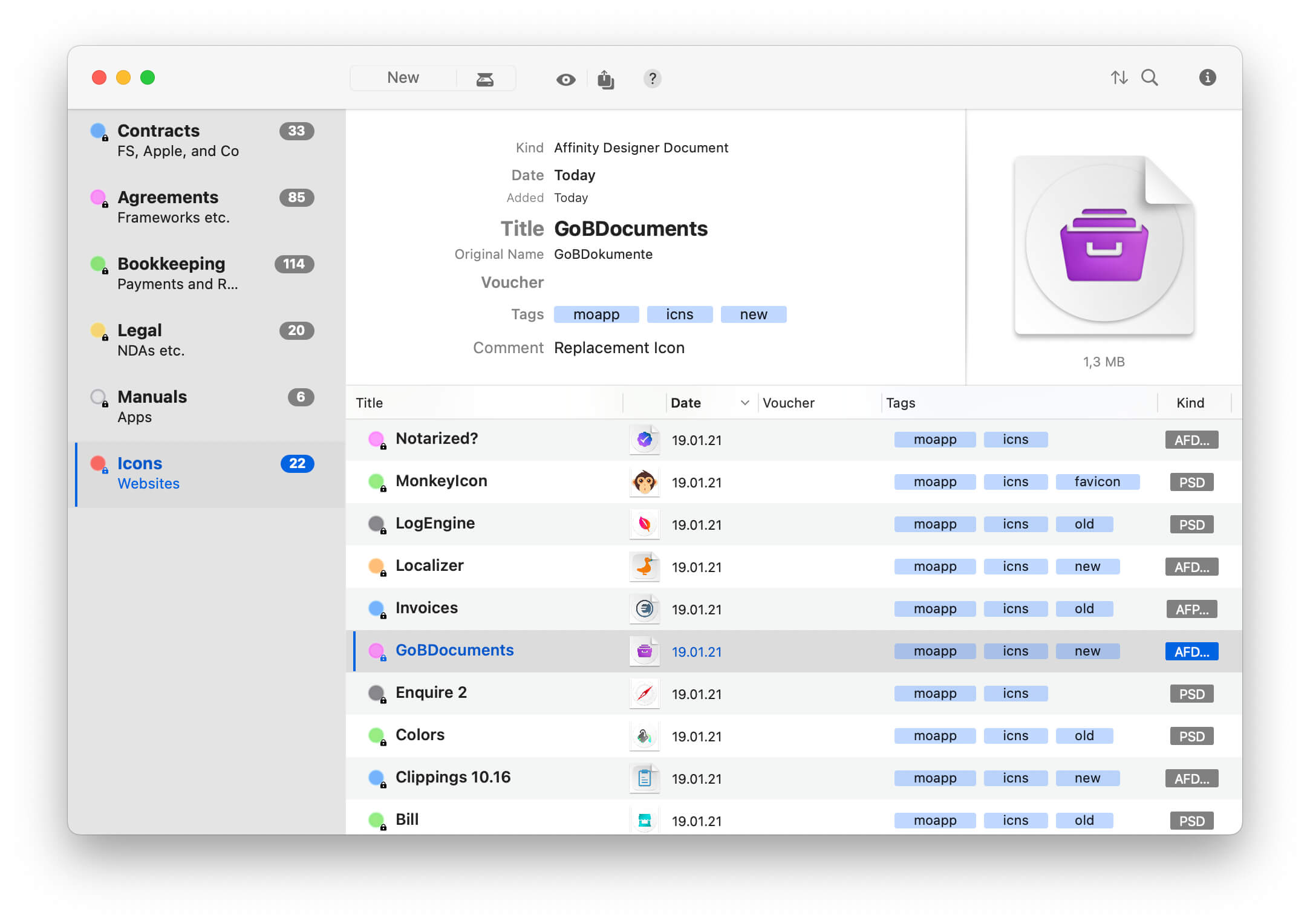 Documents stored in the program cannot be modified or manipulated. Thus, GoBDocuments can be used for accounting, business and legal documents.